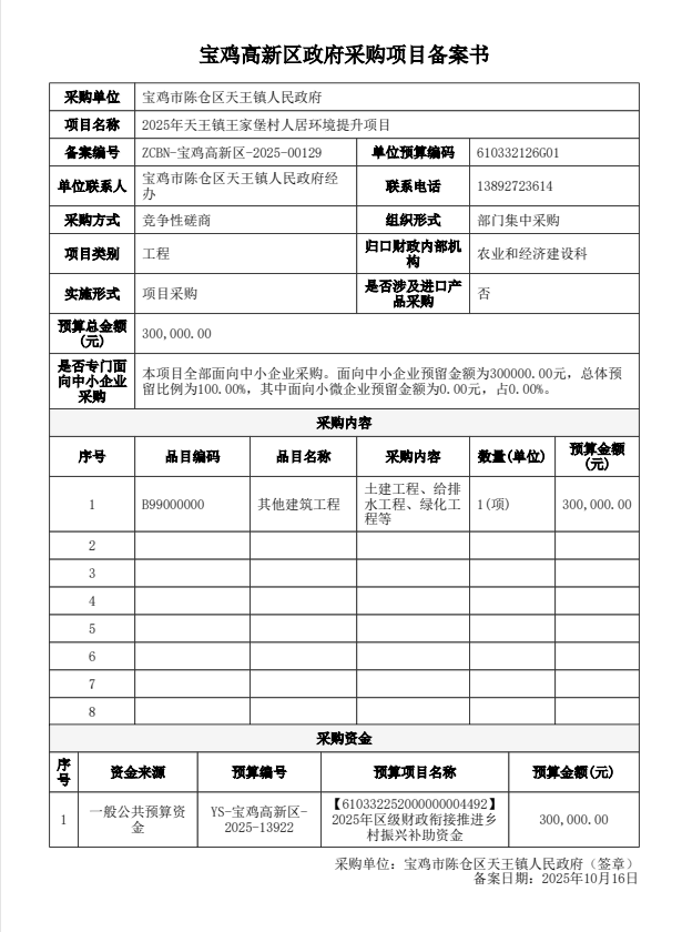 2025年天王镇王家堡村人居环境提升项目竞争性磋商公告